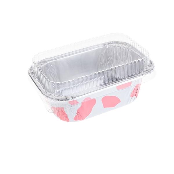 ถ้วยฟอยล์/ถาดฟอยล์ ทรงเหลี่ยม สีขาวลายวัว พร้อมฝา ใช้อบขนม เบเกอรี่