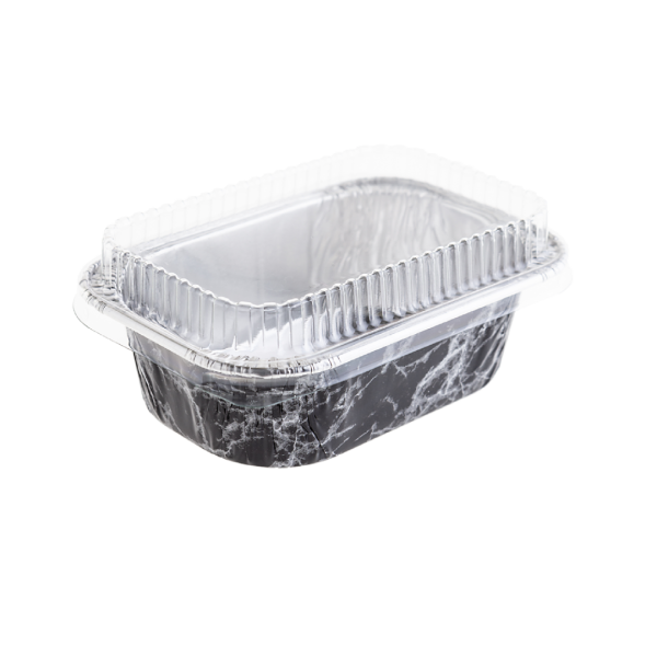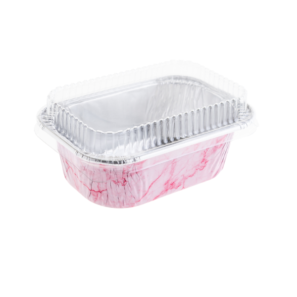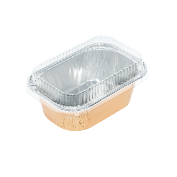 ถ้วยฟอยล์/ถาดฟอยล์ ทรงเหลี่ยม สีโรสโกลด์ พร้อมฝา ใช้อบขนม เบเกอรี่