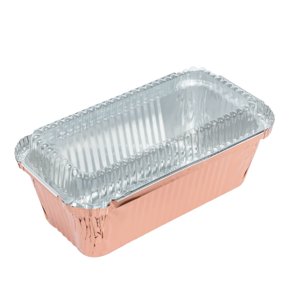 ถ้วยฟอยล์/ถาดฟอยล์ ทรงรี สีโรสโกลด์ พร้อมฝา ใช้อบขนม เบเกอรี่