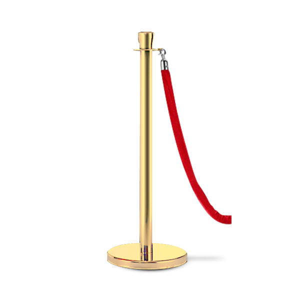 เสากั้นทางเดินสเตนเลสสีทอง เสาเกี่ยวได้ 2 ด้าน มาพร้อมสายคล้องสีแดง (1ต้น)